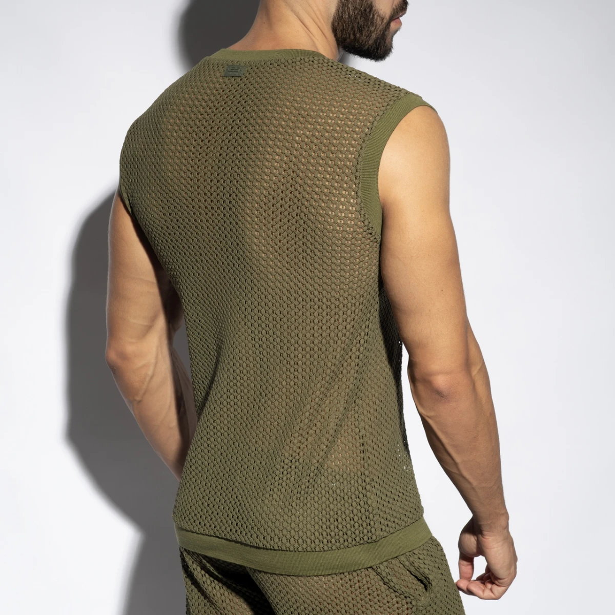 Cool? Yes. Kool? Definitely Yes. Keeping you cool AF, while making you look Kool AF - it's a stunning Vest Tee like no other! It's as light as a breeze, while heavy on the tease as it shows off your guns & all the subtle chesticle details inside - with stunning, alluring, hole-y fabric. Made from gorgeous patterned fabric that looks totally unique - like you. With thick, beautifully-designed hem sections on neck, sleeveless-arm areas & lower waist hem-line. Super-stretch material for the perfect drape, drip & fit. V-neck shape for that modern, on-trend look.